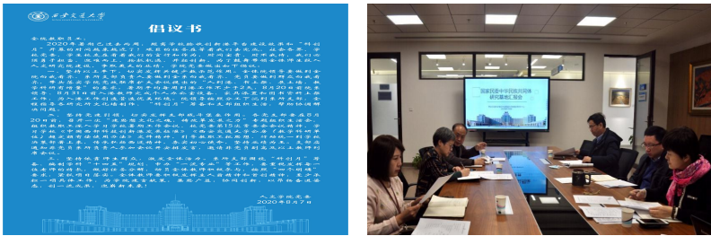 《周易》有言:观乎人文,以化成天下。6163银河net163am作为6163银河net163am人文精神建设的重要“窗口单位”,始终将人文精神和文化建设作为塑造“人文旗帜”的重要抓手。2020年,学院党委高扬以爱国主义为核心的“四面旗帜”,将西迁精神作为入职、入学第一课。组织师生学习抗疫先进事迹,参与科研攻关,开展心理援助,创作文艺作品。推进“三全育人”综合改革,丰富师德教育载体,与新进教师谈心谈话、组织青年教师座谈会,了解青年教师思想和工作动态,加强思想引导和业务帮扶。动员教师积极“跑5”,对接需求、了解国情、拓展视野、精准服务。树立“嗷嗷叫的”青年群体,宣传先进事迹,引导教师在平凡岗位创造不平凡业绩。加强研究生思政工作,将导师育人责任分解落实在学业指导、思想引导、就业帮扶等环节;组织学生参加学科、学术竞赛,举办“樱花杯”诗词大赛等活动,激发学生创新活力。获批“文化+”平台建设项目,鼓励教师参与设计、创作创新港Logo、楼牌、铭石、雕像、景观园林等文化标识、纪录片《千年回响》、原创文艺作品。完成创新港研究院文化长廊建设,拍摄、制作学院中英文宣传片、宣传册,“人文交大”微信公众号累计阅读量14万+。获评学校首届精神文明建设先进单位。